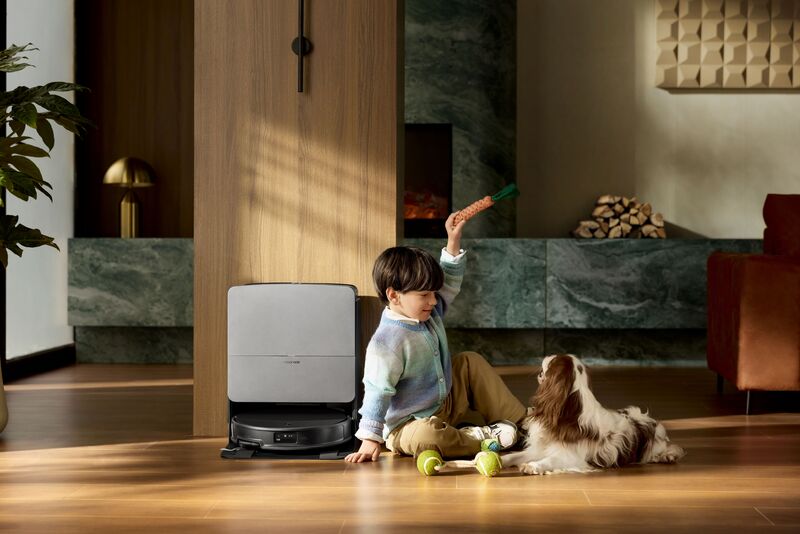 Un plateau de nettoyage monobloc amélioré augmente la couverture et le volume d’eau pour des rinçages plus profonds et des cycles plus silencieux [20], tandis qu’un design auto-nettoyant réduit l’entretien manuel par rapport aux générations précédentes [21]. Après le lavage, le séchage à l’air chaud à 55°C aide à inhiber l’humidité et les odeurs, le séchage du sac à poussière à l’air frais garde la base propre, et la vidange automatique de la poussière prolonge jusqu’à 65 jours entre les changements de sac. Le confort d’utilisation est renforcé par le détachement automatique des serpillières lors du nettoyage des tapis, le remplissage automatique à l’eau chaude, la recharge rapide en 2.5 heures [22], la distribution automatique de détergent, ainsi qu’une base détachable facilitant un rinçage manuel occasionnel lorsque nécessaire.